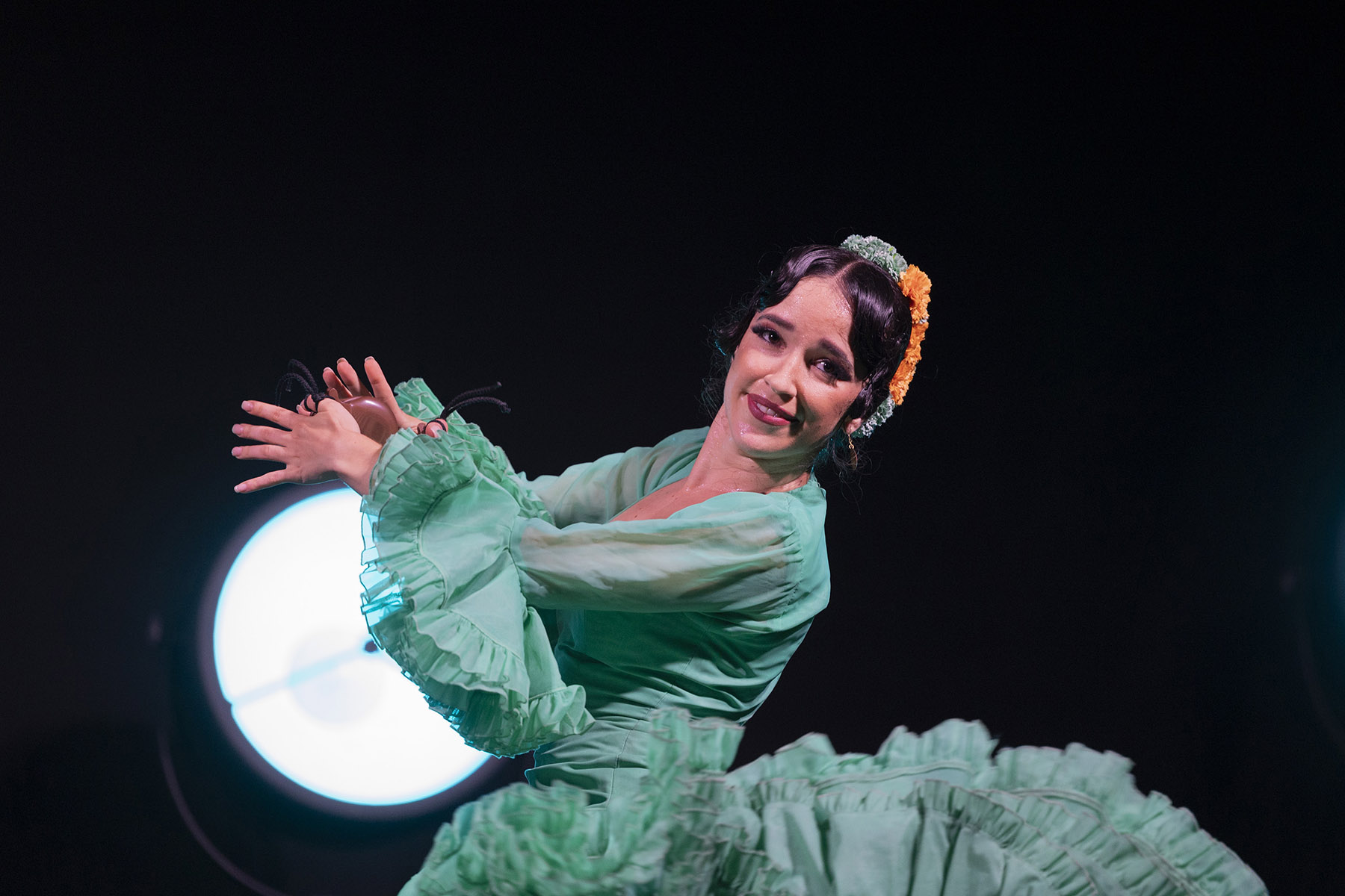 Por más que se meta el ritmo en mi cuerpo soy incapaz de levantarme e intentarlo. Primero y por supuesto para no hacer el ridículo y luego porque como hacen los extranjeros cuando nos ven bailar, no quiero perderme ningún detalle, no quiero perderme nada, quiero ser parte de ese espectáculo sonoro y visual que se despliega ante mis ojos y que me deja embelesado hasta el final y con ganas de más. Para mi es como un viaje de vuelta al baile de toda mi vida pero sentado en una silla.
